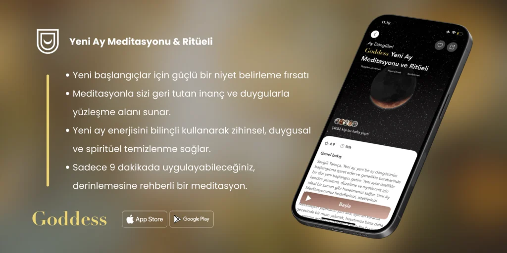 Bu dönem boyunca bu soruları kendinize sormanız, geçici değil kalıcı sistemler kurmanız için büyük önem taşıyor. Bu yolda sana Goddess App‘in rehberli meditasyonları rehberlik etsin. Kendini tanıma ve keşfet yolculuğunda en büyük destekçin.